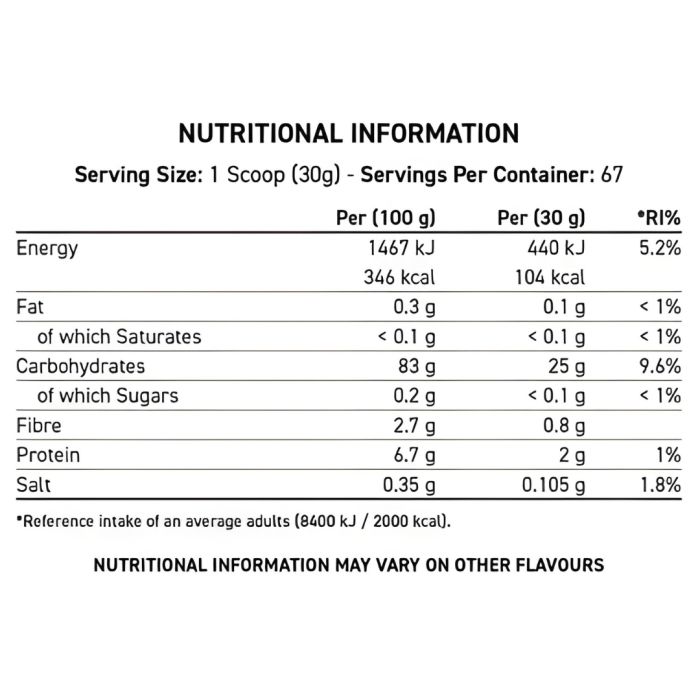 هو مكمل غذائي على شكل دقيق أرز ناعم 100% طبيعي، بدون سكر مضاف، مصمم لتوفير مصدر طاقة سريع وسهل الهضم.
